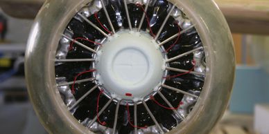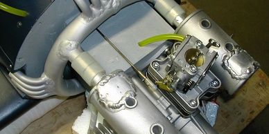Made from 6061T6 Aluminum, these fully functioning exhaust collector rings can be plumbed into any engine. The top and bottom mount on the rings are bulkheads, dividing the ring into left and right halves (9 pipes each). Designed to use one-half of the ring for a single cylinder engine, or both halves for twins (or Radials as shown!). Exhaust exits 18 pipes in the scale locations (4 top, 4 left, 4 right, 6 bottom), so you won't have to cut any holes in your cowls! Weight is 0.55 pounds per ring, available in silver or black finish. Custom input pipe diameter and locations available upon request to suit your engines. $300 / pair plus shipping. Photo credit: Noah Butlern's F7 build from rcuniverse showing a GST exhaust ring coupled to DLE111 through stock mufflers.