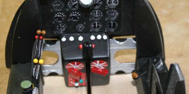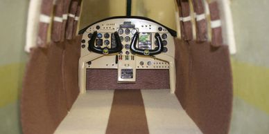 The F7 cockpit kit includes the dash assembly, yoke, side panels, seat, head rest panel, controls dash graphics and more. The majority of the parts are vacuum-formed 0.020" polystyrene plastic. It is designed to be good looking and scale, yet rigid while adding as little weight as possible to the airplane.